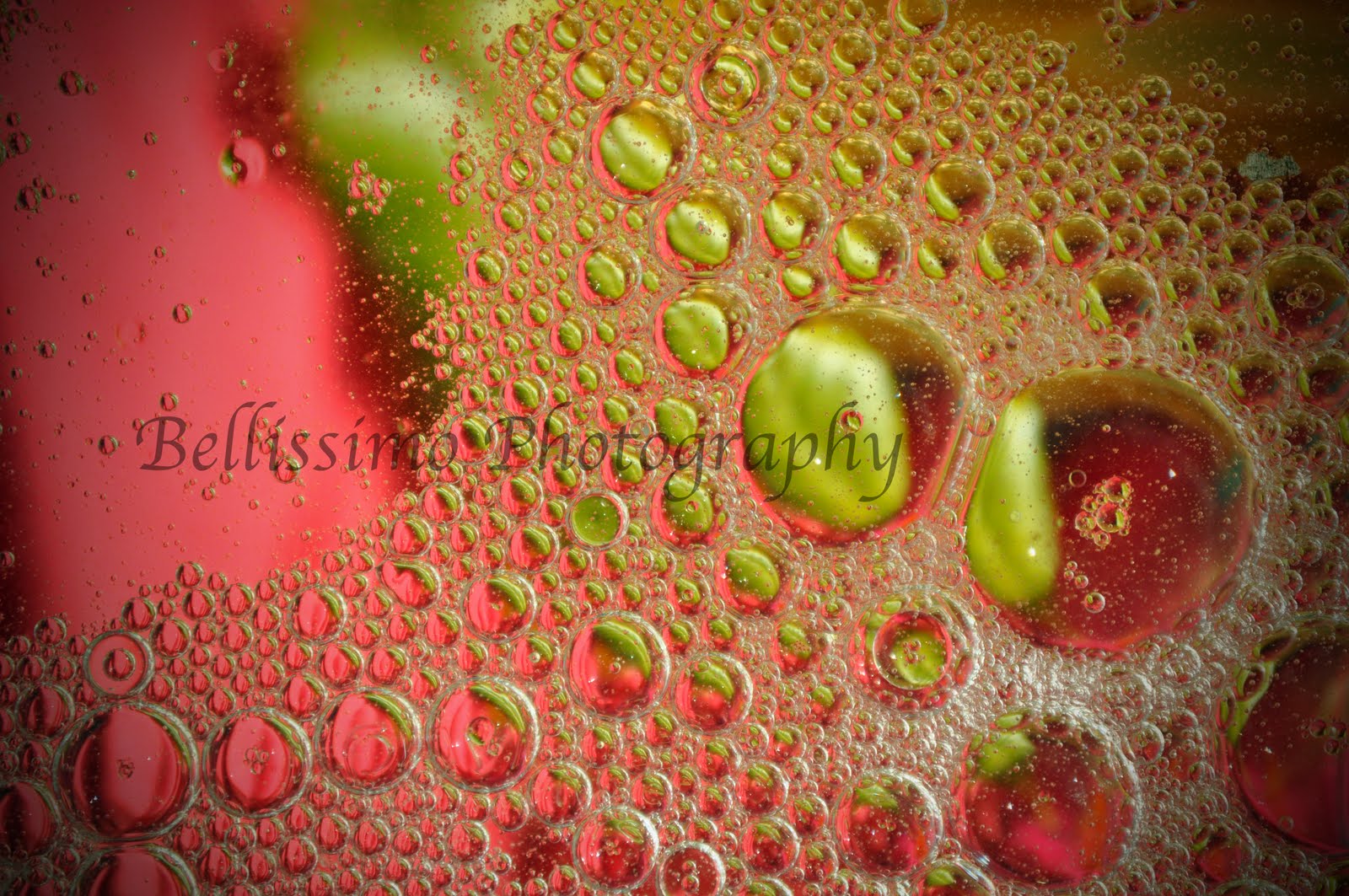 Had fun setting up this photo shoot! It's oil and water in a glass casserole dish propped up about 8 inches above a pink t-shirt and a green holly leaf I picked off our tree.